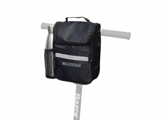 The AlveyTech handlebar bag is constructed of high-quality nylon with an insulated interior to keep your lunch warm or your drink cold. Like a belly bag for your bike, this handy container represents a marriage of utility and convenience that any scooterist or bike rider will appreciate.