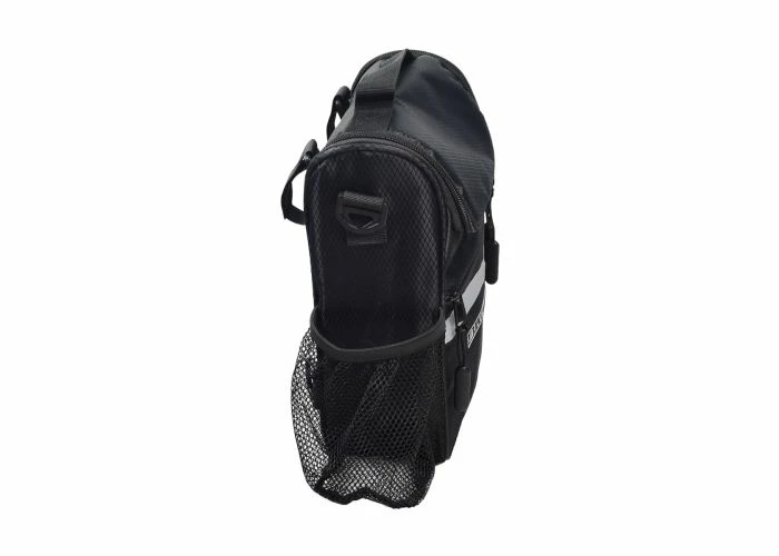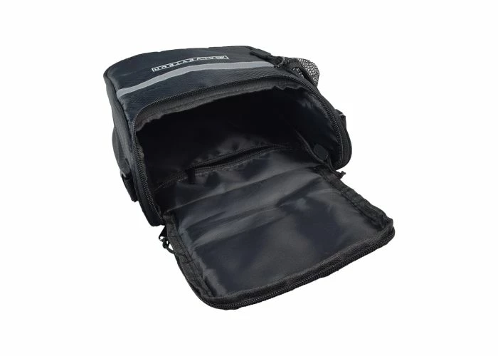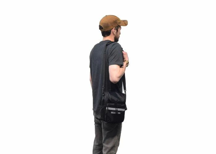 But that’s not all. The bag secures to the bike or scooter’s handlebar with a trio of hook & loop straps; two on the top and another for the headtube. Once you arrive at your destination, just undo the fastening straps, attach the shoulder strap and take the bag along with you. If inclement weather is a concern, just stretch the rain cover over the front of the bag and continue on your journey. It also sports an applied reflective safety tape for enhanced visibility under low light conditions.