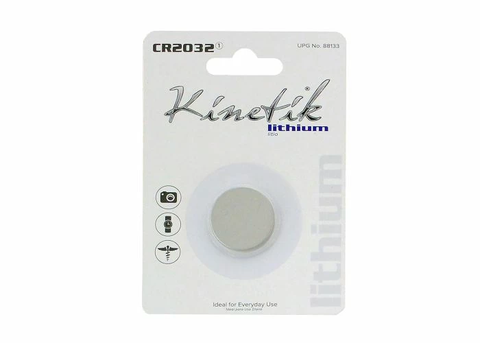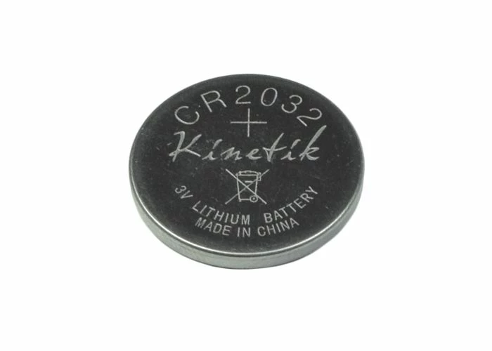 CR2032 coin cell lithium battery, commonly used on watches, calculators, heart rate monitors, exercise equipment, bike computers, and many small electronic devices