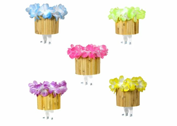 The Tiki Cute Cup features bamboo siding and floral lei that turns any bike or scooter into or beach cruiser. Best thing; Monster Scooter Parts has these great Cruiser Candy holders available in five different floral style; Blue Flowers, Green Flowers, Pink Flowers (very popular), Purple Flowers, and Yellow Flowers.