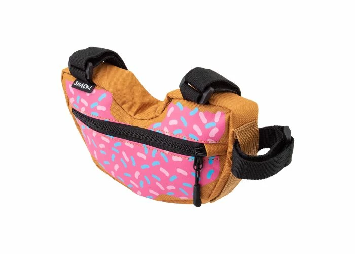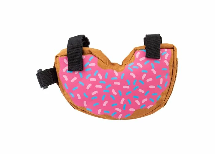 Everyone loves doughnuts and you can display your affection for the confection with this beautiful doughnut frame bag for bikes strapped onto your favorite 2-wheeler