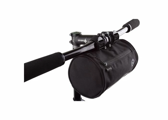 We all need some way to carry our phone, wallet, keys, and other daily goodies with us. Panniers and backpacks are OK, but to access your stuff you have to stop, dismount, lean your bike against a tree or whatever, unzip the bag… you get the picture. This handlebar roll bag keeps your gear right in front of you, only a few inches from your hand.