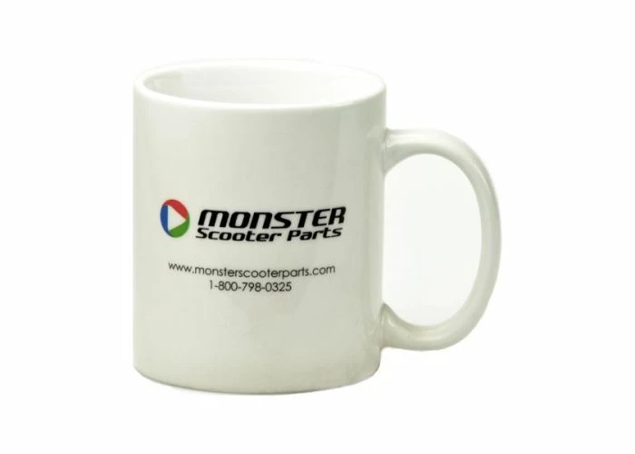 Made of white porcelain with the old-style Monster Scooter Parts logo, web address, and phone number on the side