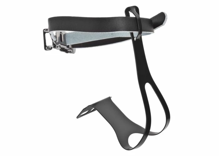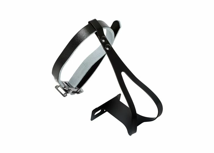 The Black Racing Toe Clips with Leather Straps is a great accessory for your bike or scooter