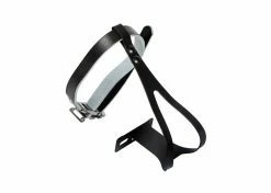 The Extra Large Racing Black Chrome Toe Clips with Leather Straps is a great accessory for your bike or scooter