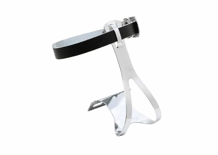 The Large Chrome Racing Toe Clips with Leather Straps is a great accessory for your bike or scooter